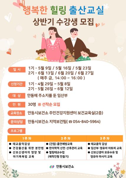 ▲ 안동시, 2025년 상반기 행복한 힐링 출산교실 수강생 모집 |