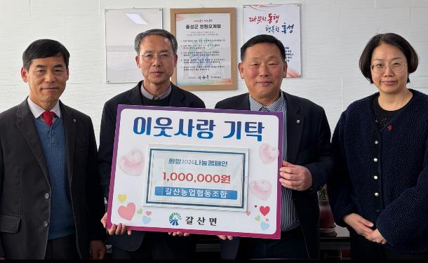 [무한뉴스=정민정 기자] 홍성군은 갈산농협이 갈산면을 통해 이웃돕기 성금 100만 원을 기탁하며 지역사회 나눔 실천에 동참했다고 밝혔다.