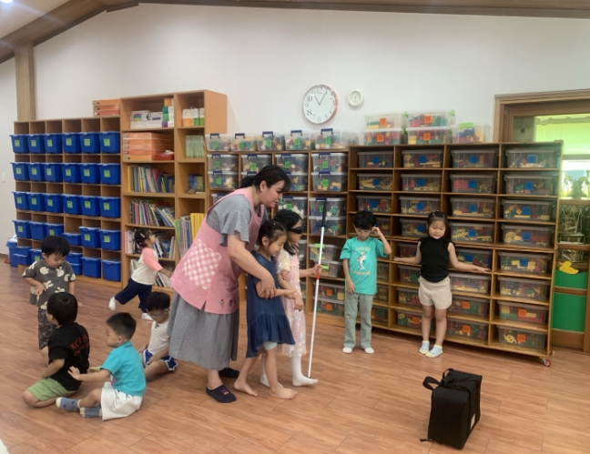 유치원 및 초등학생 교육은 ‘친구의 다양성’을 주제로 이론과 체험을 접목했으며, 특히 휠체어 타기, 시각장애 체험 등 직접적인 체험활동을 통해 장애를 이해하고 필요한 도움에 대해 생각해 보는 시간을 가졌다.