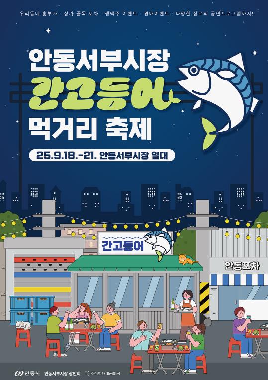 [무한뉴스=최진수 기자] 안동시와 서부시장 상인회는 오는 9월 18일부터 21일까지 매일 오후 6시부터 자정까지 서부시장 일원에서 '2025 안동 서부시장 간고등어 먹거리 축제'를 개최한다.