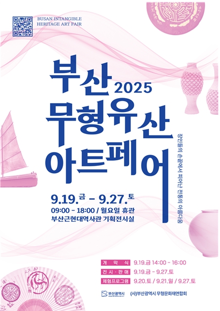 [무한뉴스=최진수 기자] 부산시는 오는 9월 19일부터 27일까지 부산근현대역사관에서 무형유산 보유자들의 전통예술 작품을 전시·판매하는 '2025 부산 무형유산 아트페어'를 개최한다고 밝혔다.