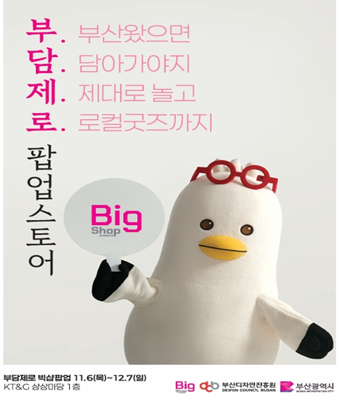 [무한뉴스=최진수 기자] 부산시와 (재)부산디자인진흥원은 부산의 감성을 체험할 수 있는 '부담제로, 브랜드숍 반짝 매장(팝업스토어)'을 오늘(6일)부터 12월 7일까지 케이티앤지(KT·G) 상상마당 부산(부산진구 부전동) 1층에서 운영한다고 밝혔다.