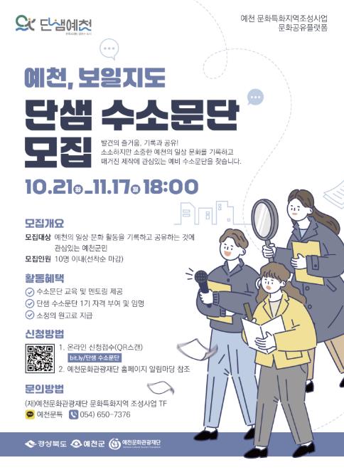 예천 문화특화지역 조성 사업 '예천, 보일지도' 단샘 수소문단 모집!