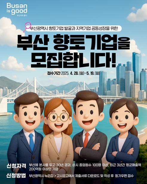 [무한뉴스=최진수 기자] 부산시는 지역 산업 기반을 이끌어 온 부산 연고 기업을 대상으로 '2025년 부산시 향토기업'을 공개 모집한다고 밝혔다.