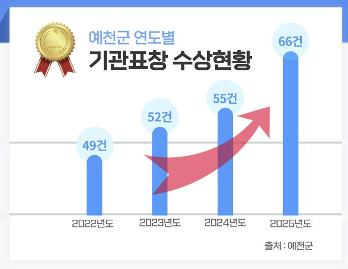 | ▲ 예천군, 기관표창 역대 최다 기록 경신… 2025년 66건 수상 |
