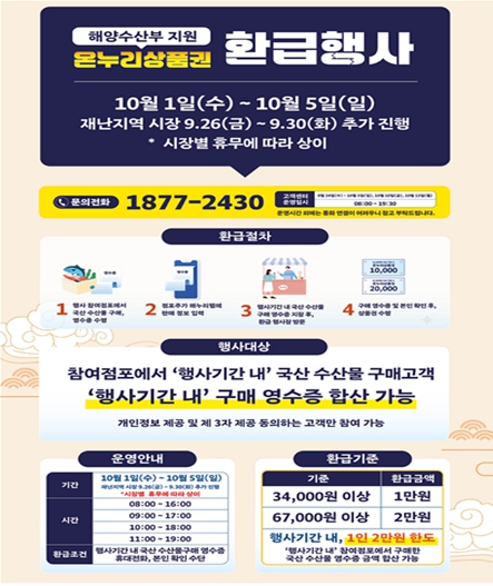 행사와 관련한 자세한 사항은 환급행사 고객센터(사)한국수산회)로 문의하거나, 대한민국 수산대전 공식 누리집을 참조하면 된다.