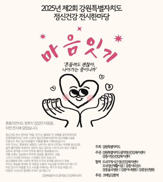 [무한뉴스=정민정 기자] 강릉시는 10월 13일부터 오는 19일까지 강릉역에서 '2025년 제2회 정신건강 전시한마당'을 개최한다.