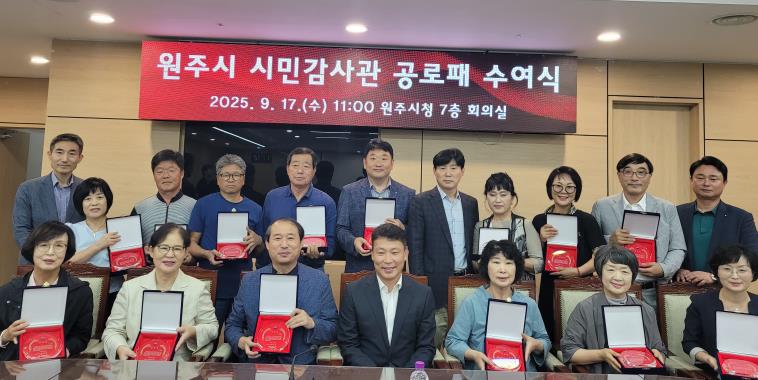 [무한뉴스=정민정 기자] 원주시는 지난 17일 시청 7층 회의실에서 시민감사관 공로패 수여식을 개최했다.