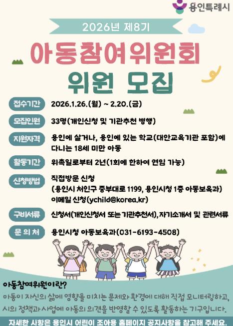 | ▲ 용인특례시가 '제8기 아동참여위원회 위원'을 모집한다 |
