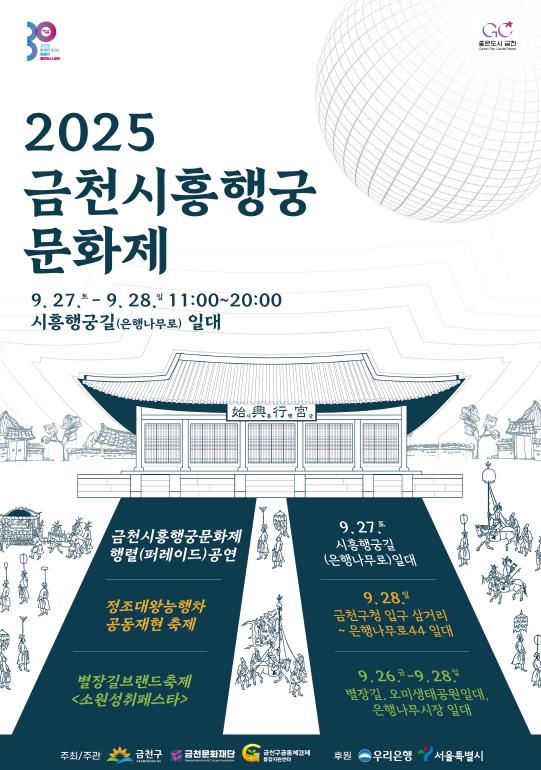 [무한뉴스=정승훈 기자] 금천구와 금천문화재단은 27일과 28일 양일간 금천구 은행나무로 일대에서 ‘2025 금천시흥행궁문화제’를 개최한다고 밝혔다. 인근에서 하루 전날인 26일부터 지역 대표 축제인 ‘2025 별장길 브랜드 축제(부제: 소원성취페스타 소·성·페)‘도 열려 축제의 한마당이 펼쳐질 것이라고 구는 설명했다.