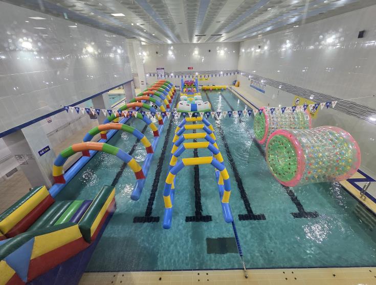 | ▲ 역삼청소년센터 수영장에 설치된 워터레이스 경기장 |