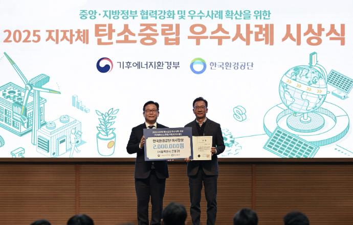 [무한뉴스=정승훈 기자] 서울 은평구는 지난 17일 ‘2025 지자체 탄소중립 콘퍼런스’에서 탄소중립 이행성과 부문 우수기관으로 선정되어 한국환경공단 이사장상을 받았다고 밝혔다.