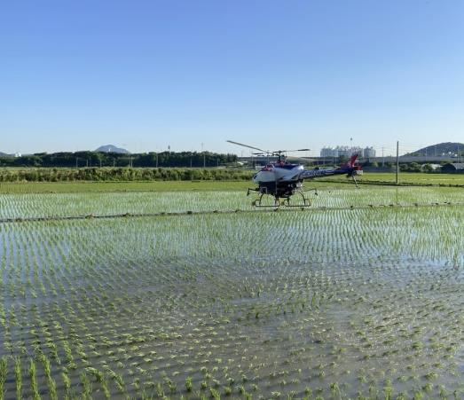 | ▲ 무인헬기를 활용한 병해충 방제 현장 |