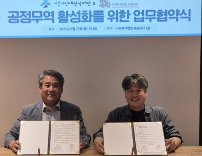 [무한뉴스=정승훈 기자] (재)시흥시인재양성재단은 지난 6월 23일 사회복지법인 복음자리와 공정무역 활성화 및 환경ㆍ사회ㆍ지배구조(ESG) 경영 실천을 위한 업무협약을 체결했다.