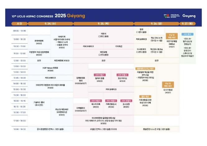| ▲ ‘제10차 UCLG ASPAC 고양 총회’ 프로그램 일정표 |