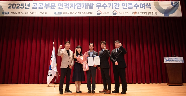 '공공부문 인적자원개발 인증'은 근로자 역량 개발과 조직의 지속적인 성장을 위해 체계적이고 전략적인 인적자원개발(HRD) 체계를 운영하는 기관을 교육부와 인사혁신처가 공동으로 선정 및 인증하는 제도다.
