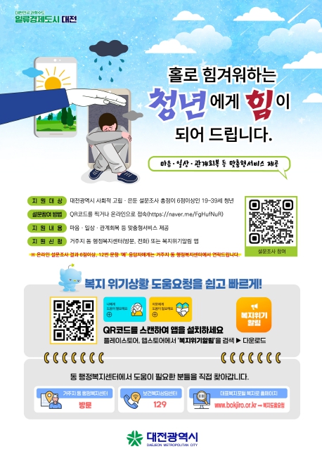 [무한뉴스=정민정 기자] 대전시가 청년 고독사 고위험군을 조기에 발견하고 실질적인 지원을 제공하기 위한 ‘청년 고독사 고위험군 지원사업’을 본격적으로 추진한다.