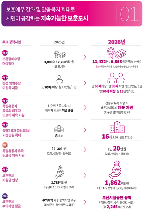 시는 2026년을 '부산 보훈의 원년'으로 설정하고, 보훈 예산을 전년 대비 대폭 확대한 410억 원 규모로 편성했다.