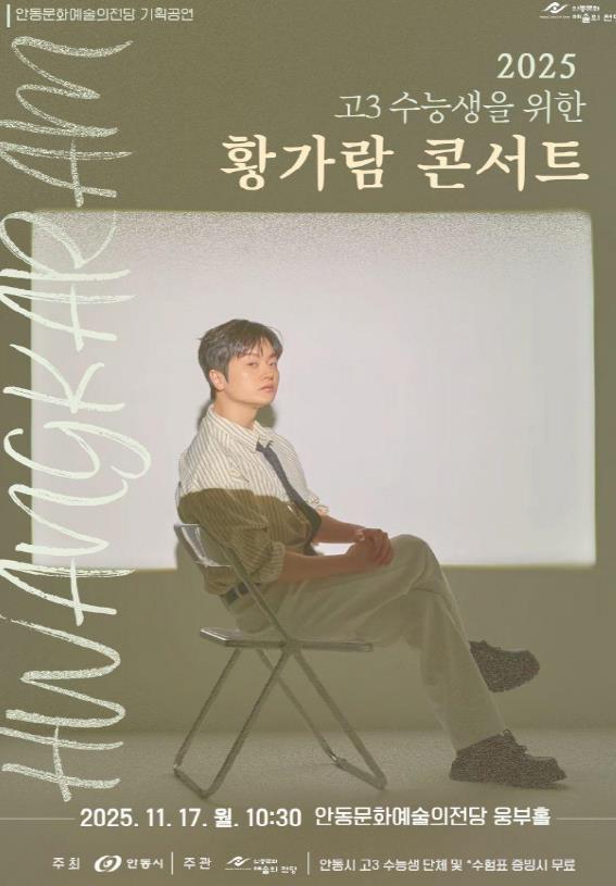 [무한뉴스=최진수 기자] 안동문화예술의전당은 2026학년도 대학수학능력시험을 마친 고3 수험생들을 위로하고 격려하기 위한 공연으로, 황가람 콘서트를 마련했다.
