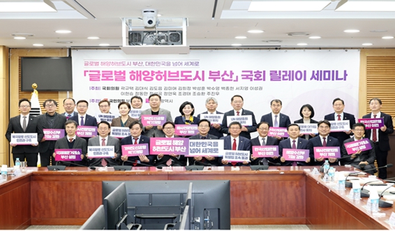 [무한뉴스=최진수 기자] 부산시는 오늘(29일) 오후 2시 국회의원회관 제7간담회의실에서 '글로벌 해양허브도시 부산'국회 릴레이 세미나의 마지막 여정인 3회차 세미나를 개최하고, 부산의 미래 성장을 견인할 '산업 및 인재 혁신 전략'을 집중적으로 논의한다고 밝혔다.