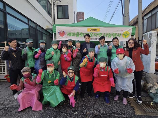 [무한뉴스=손성기 기자] 지난 5일 군포시 군포1동새마을지도자협의회와 군포1동새마을부녀회는 군포1동행정복지센터 앞마당에서 ‘2025년 사랑담은 김장김치 담그기’행사를 열고, 지역 내 어려운 이웃을 위한 따뜻한 나눔을 실천했다.