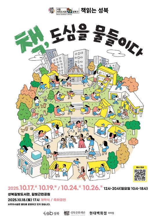 [무한뉴스=정승훈 기자] 서울 성북구와 성북문화재단이 오는 10월 17일부터 26일까지 매주 금·토·일요일, 성북길빛도서관과 길빛근린공원 일대에서 『서울야외도서관 책 읽는 성북 – 책, 도심을 물들이다』를 운영한다.