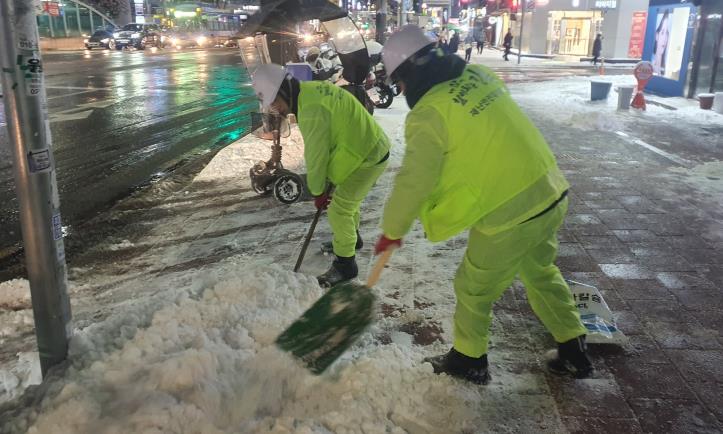 | ▲ 강북구 내 제설작업이 진행되고 있다. |