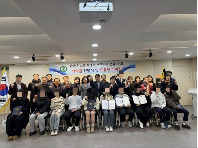 | ▲ 한국 청소년 육성회 서부지구 응암1분회, 장학금 전달식 및 표창장 수여식 장면 |
