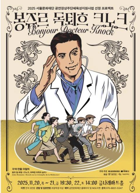 이번 공연은 서울문화재단의 ‘2025 공연장상주단체육성지원사업’의 일환으로 진행된다. 프랑스 작가 쥘 로맹의 1923년 발표 희곡 ‘크노크, 어쩌면 의학의 승리’를 원작으로 한 공연으로, 국내에서 최초 무대화됐다.