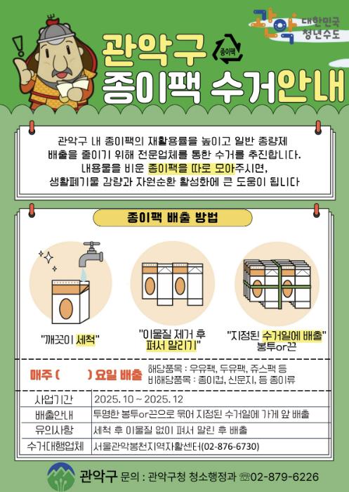 | ▲ 관악구 종이팩 수거 안내 포스터 |