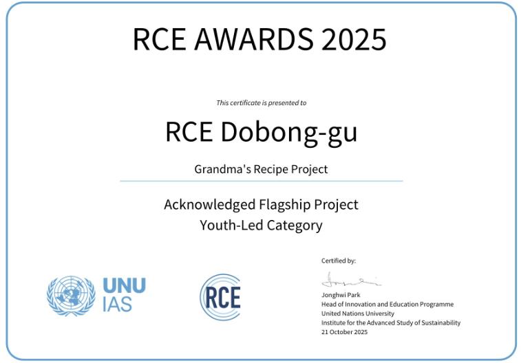 [무한뉴스=정승훈 기자] 서울 도봉구가 ‘2025 RCE 어워드’(RCE Award)에서 ’우수 프로젝트‘(Acknowledged Flagship Project) 상을 수상했다.