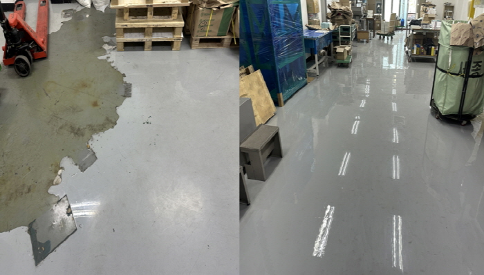 | ▲ 바닥공사 근로환경 개선사업 전후 |