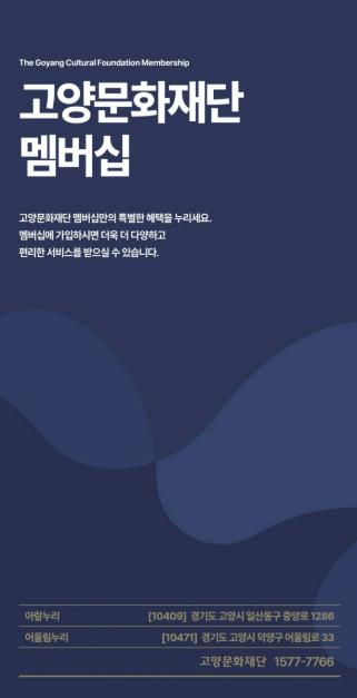 이동환 고양특례시장은 “유료 회원제 제도를 통해 시민들은 실질적인 혜택을 누리고, 재단은 재원을 확보하여 문화예술 활성화 기반을 넓혀나가게 될 것”이라며 “앞으로도 더 다채로운 공연과 전시를 선보이며 관객층을 확보해 나가겠다”고 밝혔다.