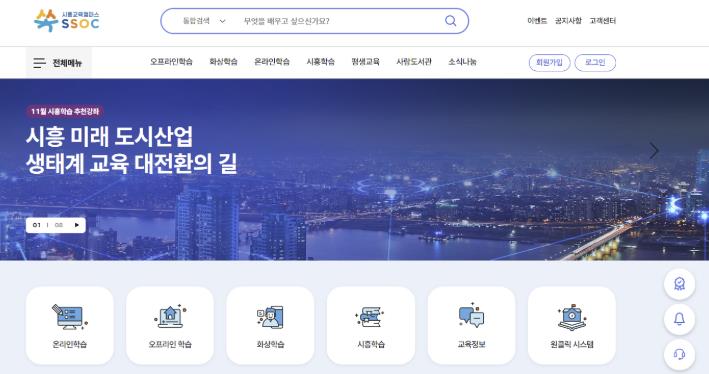 | ▲ 시흥교육캠퍼스 쏙(SSOC) 누리집 화면 |