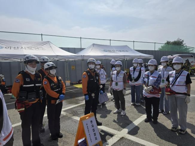 이번 훈련에는 소방, 경찰, 군, 아산시, 재난거점병원 등 15개 기관·단체와 장비 38대, 250여 명이 참여했다. 훈련을 통해 재난 발생 시 동원 가능한 자원·인력의 신속 집결과 재난통신체계를 이용한 정보 공유시스템의 정상 작동, 각 기관 간의 협력체계 등을 집중 점검했다.