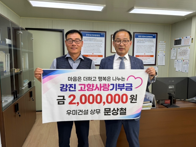 [무한뉴스=정민정 기자] 문상철 우미건설 공사부 상무가 고향 강진을 향한 마음을 담아 고향사랑기부금 200만원을 기탁했다.