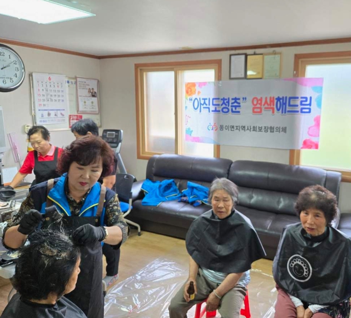 염색 사업은 관내 어르신들을 대상으로 염색 및 커트 서비스를 무료로 제공하는 사업으로 매년 동이면 내 경로당 1~2곳에서 정기적으로 시행되고 있다.