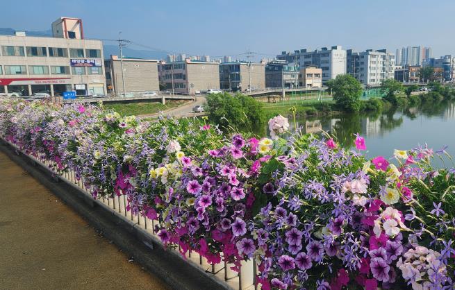 이번 교량 꽃다리는 웨이브페츄니아 등 15종의 꽃 화분 1,969개로 조성됐으며, 자동관수 시스템도 함께 설치해 여름철에도 안정적으로 관리할 수 있도록 했다.