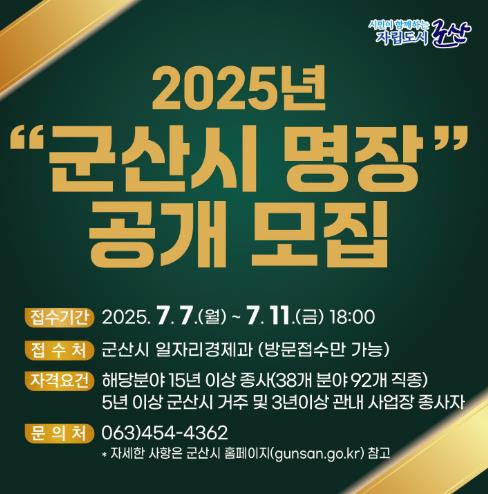 | ▲ 군산시, 2025년 명장(名匠) 공개모집…최고 숙련기술자 발굴 |