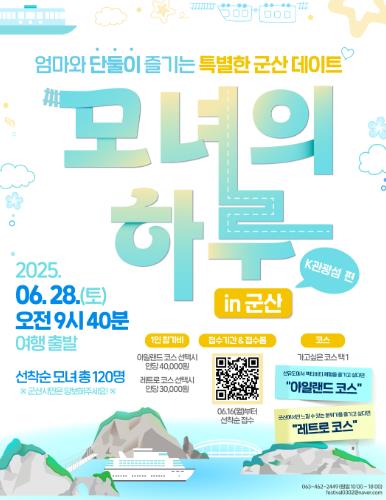 프로그램 참여는 군산시 공식 사회관계망(SNS) 계정(페이스북, 인스타그램), 군산 k-관광섬 계정(인스타그램) ‘모녀의하루 in 군산 K-관광섬 편’ 게시글 내 QR 부호를 통해 신청할 수 있다.