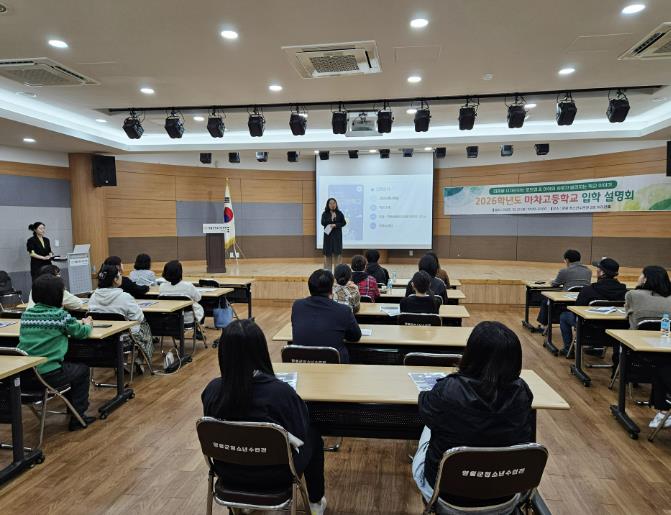 [무한뉴스=정민정 기자] 교육발전특구 시범지역 사업으로써 마차고등학교는 지난 21일 영월청소년수련관에서 중학생 학부모를 대상으로 2026학년도 교육과정 설명회를 개최하며 지역의 보건·간호 인력 양성을 위한 선이수 학점제의 순조로운 추진을 이어가고 있다.