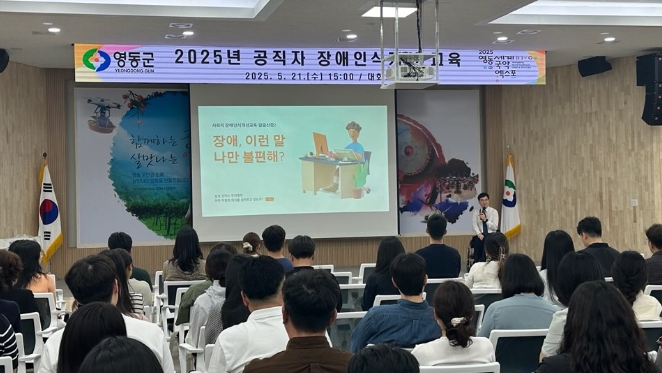 군은 지난 21일 영동군청 대회의실에서 공직자 160여명을 대상으로 장애인식개선 교육을 실시했다고 밝혔다.