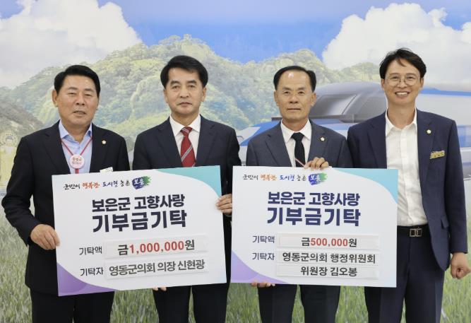 신현광 의장과 김오봉 위원장은 “기부금이 보은군의 발전과 주민 복지 향상에 작은 도움이 되길 바란다”며, “남부 3군이 함께 만들어가는 엑스포가 될 수 있도록 아낌없는 성원과 협력을 부탁드린다”고 전했다.
