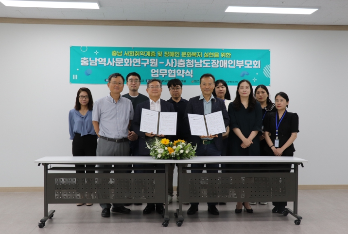 [무한뉴스=정민정 기자] 충남역사문화연구원은 19일 사)충청남도장애인부모회와 충남지역 장애인을 비롯한 사회취약계층을 대상으로 역사교육, 문화유산 체험 등 문화복지 서비스 확대를 위한 상호협력 체계를 구축하고 상생 발전을 위한 업무협약을 체결했다고 밝혔다.