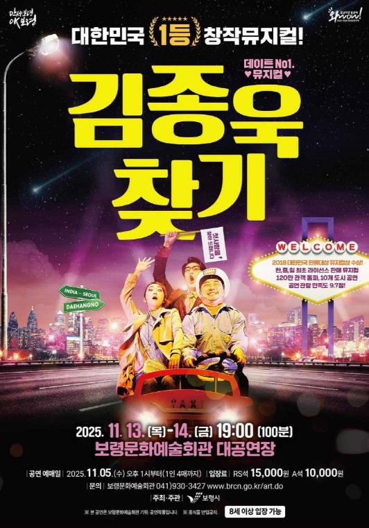 [무한뉴스=정민정 기자] 보령시가 11월 13일부터 14일까지 이틀간 오후 7시 보령문화예술회관 대공연장에서 뮤지컬 ‘김종욱 찾기’ 공연을 개최한다.