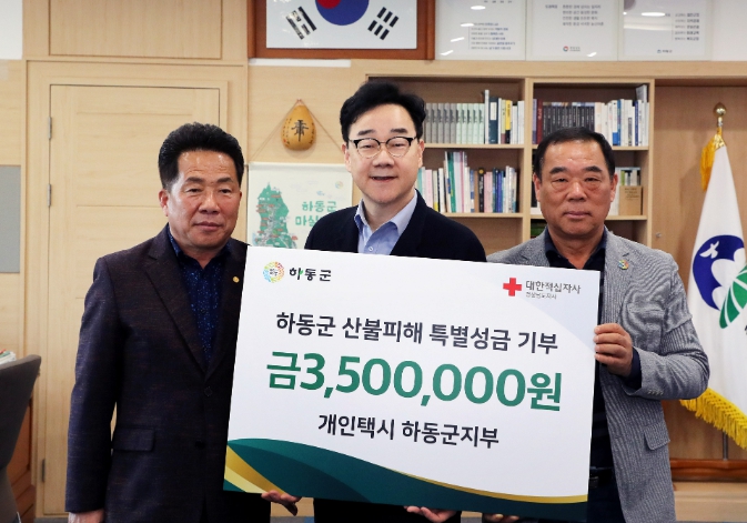 2일에는 하동읍주간보호센터(센터장 류성희) 이용자들이 십시일반 모은 성금 100만 원을, 개인택시 하동군지부(지부장 박종태)가 350만 원, 하동읍 유미자 씨가 100만 원을 전달한 바 있다.