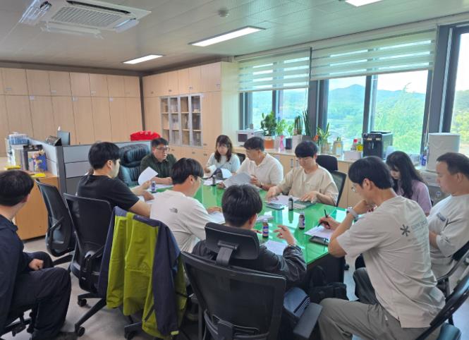 | ▲ 청양군 산림자원과 사무실에서 군 임업 관계자들이 모여 회의하는 모습 |