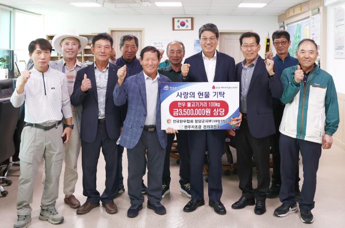 [무한뉴스=정민정 기자] 청양군은 전국한우협회 청양군지부 한우자조금관리위원회가 추석 명절을 앞둔 지난 29일 한우 불고기거리 100kg(350만원 상당)을 기탁하며 이웃사랑을 실천했다고 밝혔다.