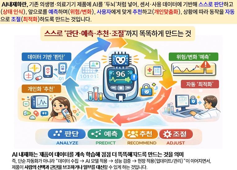 이번 사업은 의료기기·의생명 기업이 보유한 기존 제품과 기술에 AI를 ‘내재화’해 진단·분석·예측 기능을 고도화하고, 데이터 기반의 지능형 제품으로 전환할 수 있도록 지원하는 것이 핵심이다. 특히 하드웨어 중심의 기술력을 보유했지만 AI 도입에 어려움을 겪고 있는 지역 기업을 대상으로 실질적인 기술 경쟁력 강화를 목표로 한다.