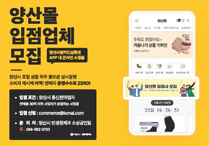| ▲ 양산사랑카드 내 온라인쇼핑몰 ‘양산몰’ 입점업체 모집 |